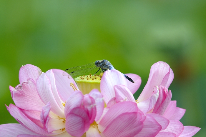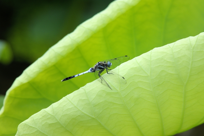 シオカラトンボ ハスの葉で羽を休めています。 |