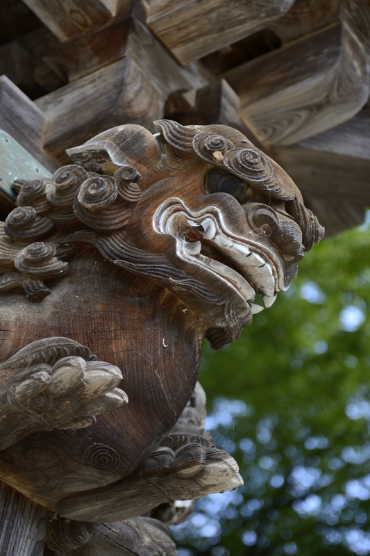 | 山門の木鼻 獅子鼻(口にセミの抜け殻が…) |