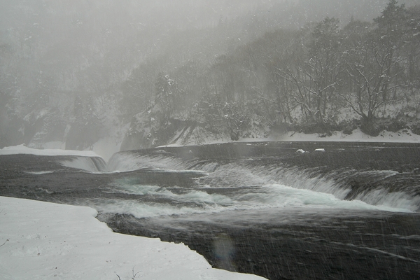 | 東洋のナイアガラと呼ばれる吹割(ふきわれ)の滝。 (ナイアガラに失礼な気もするが…) 何でこんな日に行ったのが記憶が定かではないが、遊歩道に下りるまでが大変で、 さらに歩道と川(滝)の境界がはっきりしないので、歩いてて怖かった記憶がある。 結局年賀状用に使ったのだけど、何でこんな所まで行ったんだろう… (Nikon D70、D300) |