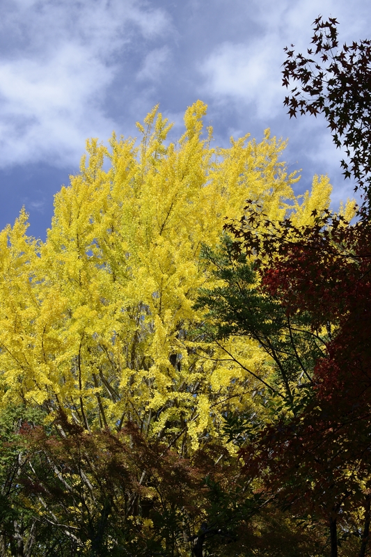 | 3度目になる北野天満宮。 今回は金閣寺から移動の途中で、本堂裏の大イチョウを見に立ち寄りました。 一瞬雲行きがあやしくなって、とても異様な色に染まった大イチョウが見られました。 (使用機材:Nikon D800/Nikon 24-70mm F2.8) (編集&up:2015年11月) |