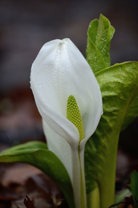 雨の日のミズバショウ。 色がしっとりとしてキレイです。 (以下 雨の日に撮影) |