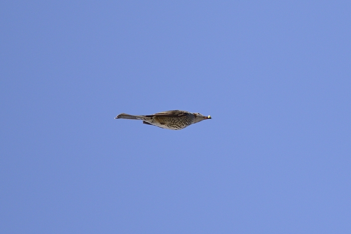 ヒヨドリ ※実を咥えたまま飛んでいます。 |