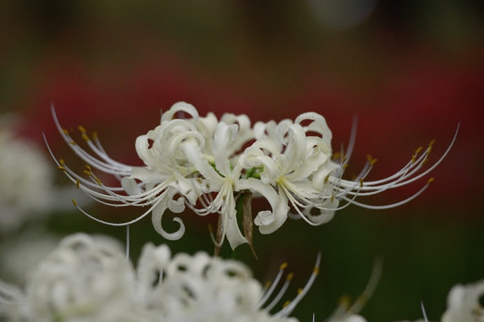 | 白いヒガンバナも、今ではあちこちで見かけるようになりました。 |
