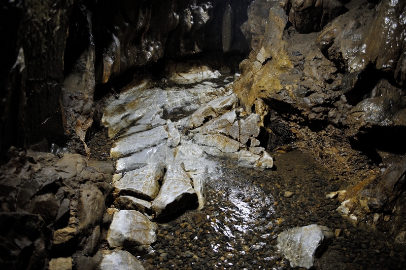 | 足はくるぶし上までじゃぶじゃぶ。 服とカメラバッグを壁にすりながら何とか通り抜けます。 |