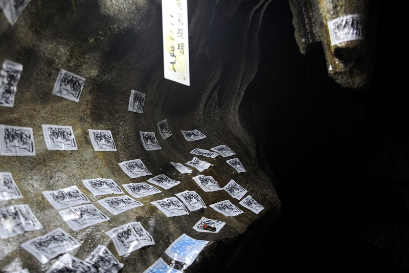 | 平尾台にある鍾乳洞のひとつが、この千仏鍾乳洞。 下の写真にあるように、「電気照明は900mまで」、「480mまでは靴のまま入洞」とあり、一体どうなっているんだと 思いつつ貸草履(無料)に履き替えて入りました。 まあ、驚きでした。 普通に入れる日本で一番(?)の広い鍾乳洞が秋芳洞なら、 ここは日本で一番(?)の狭い鍾乳洞だと思います。 鍾乳洞に少しでも興味あれば、絶対行くべき! (使用機材:Nikon D700/SIGMA24-70mm F2.8) ※編集:2015年6月 |