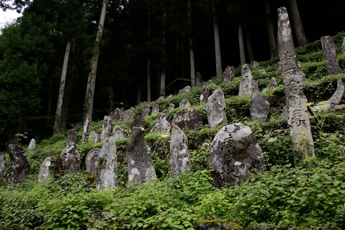 清水沢の百庚申は、下仁田町西野牧地区の県道横に広がる傾斜地にあります。 下仁田町の史跡に指定されている、石垣を築き建立した庚申群です。 木々に囲まれうすぐらい中、ひっそりと立ち並ぶさまは少し不思議な雰囲気を感じます。 (Nikon D800/編集&up:2016年5月)