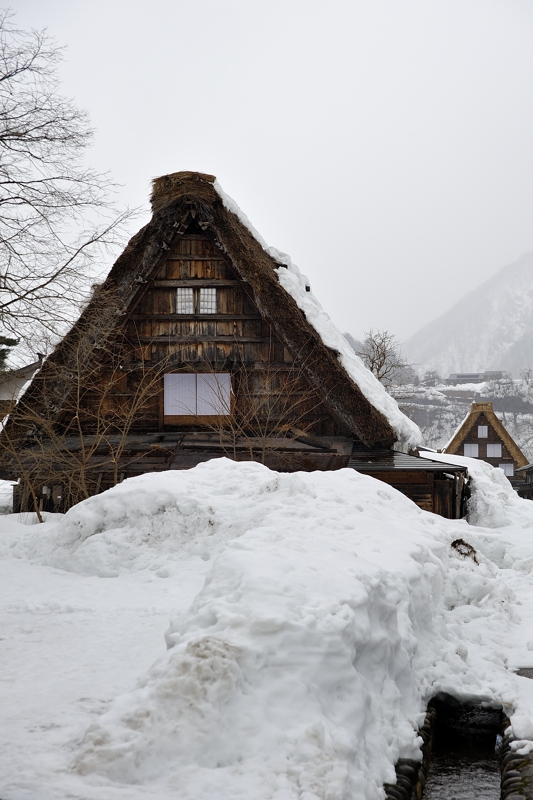 | 合掌造りの里、白川郷です。 江戸中期から昭和初期にかけて建てられた建物は、古いもので築300年を超えます。 白川郷の合掌造りは、屋根を梁(はり)の上に本を開いたように組み合わせて建築したもので、 勾配の急な茅葺きの屋根が特徴になっています。 川を挟んで野外博物館(合掌造り民家園)がありますが、昔の町並みや建物を詳しく見たい方には絶対おススメです。 ※白川郷は、1995年に「白川郷・五箇山の合掌造り集落」として世界遺産に登録されています。 (使用機材:Nikon D700/SIGMA24-70mm F2.8) |