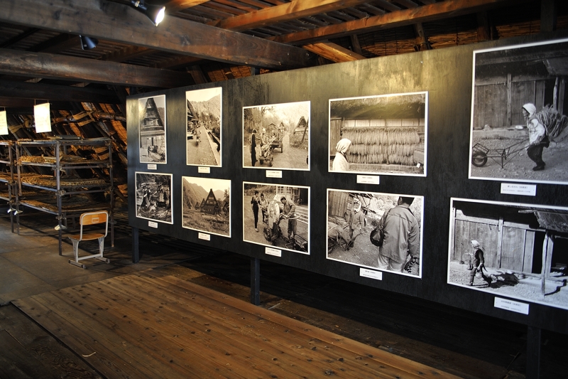 | 屋根裏(小屋裏)は、多くは蚕の飼育場所として使われていました。 たまたまですが、写真展が開かれていました。 |