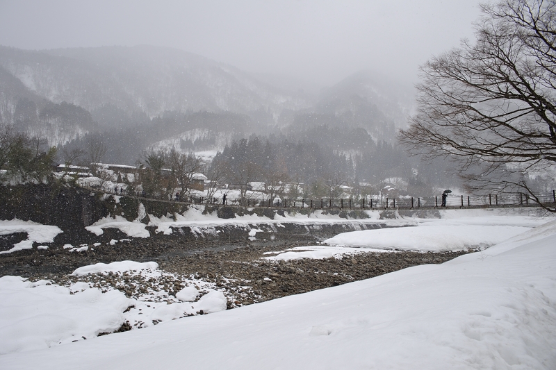 | 雪が一番降ってい時は、これぐらい舞っていました。 ※以降の写真は白川郷の町中になります。 |