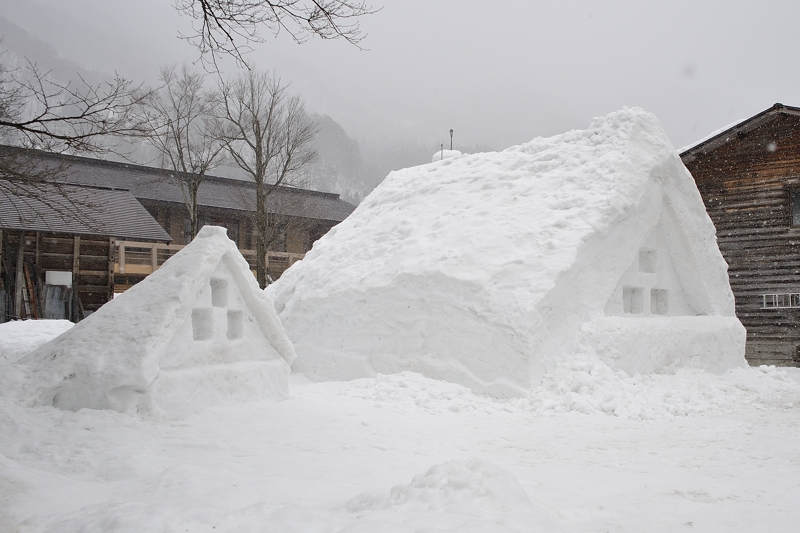 | 除雪した雪で、「雪の合掌造り」です。 |