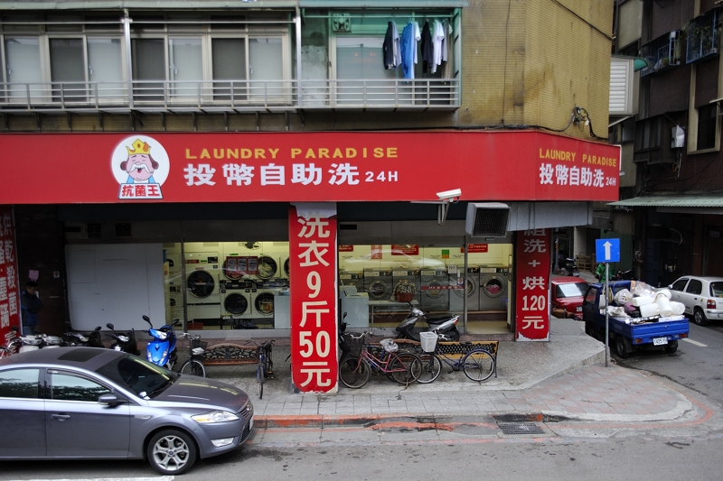 | コインランドリーです。 50元は当時のレートで140円ぐらい。 斤は重さの単位で1斤600グラム。(9斤=5.4kg) 物価を考えても安い? |