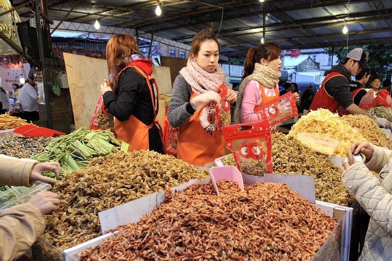 | 乾物、高級食材、漢方薬等の老舗がずらりと並ぶ、台北で最も古い問屋街。うーん、まさに日本の「アメ横」状態。 |