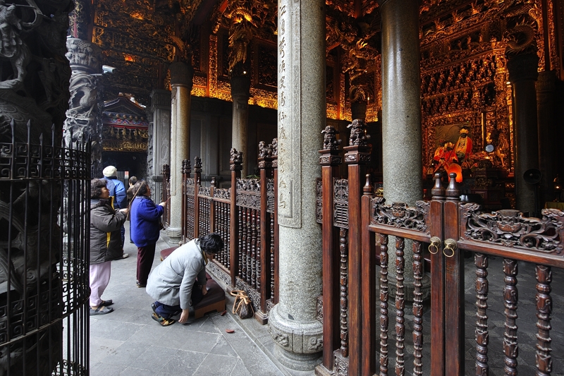 | 三峽(サンシャー)は、近くを流れる三峽渓を利用して物資が集まる水運の町だった場所。 三峽老街は、栄華の名残の赤レンガの町並み。 そして、隣接には台湾で最も精緻で美しい彫刻を持つと言われる祖師廟。 さらにその先には、狭い路地に人も車もバイクもあふれている三峽市場。 三峽… とても気に入ってしまいました。 (使用機材:Nikon D700/SIGMA 24-70mm F2.8/Nikon 14-24mm F2.8) (編集&up:2015年7月) |
