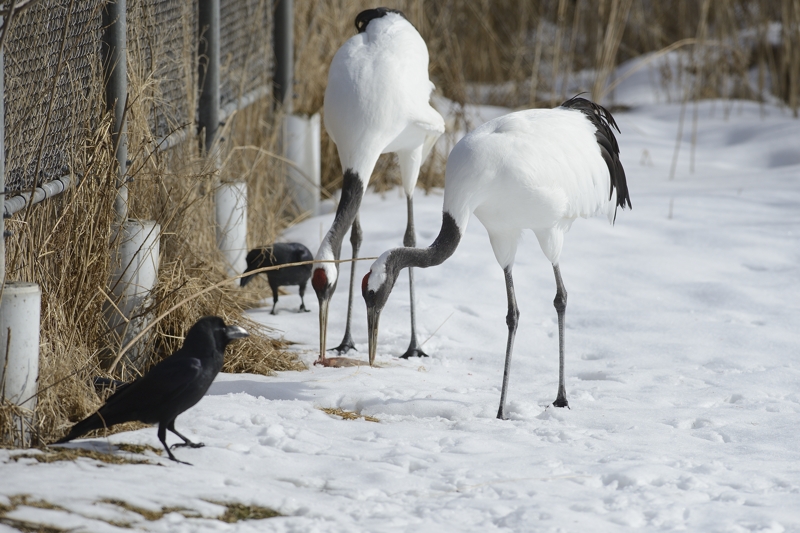 | タンチョウもカラスを嫌って逃げるのですが… |