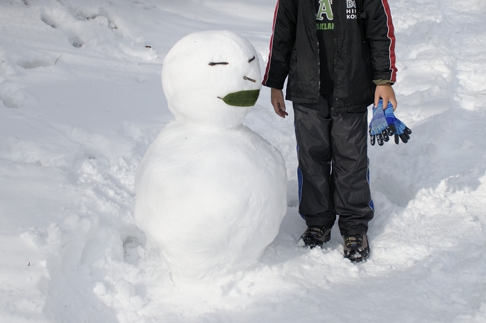 | 入口まで戻ったら晴れたので、雪だるまを作ってきました… |