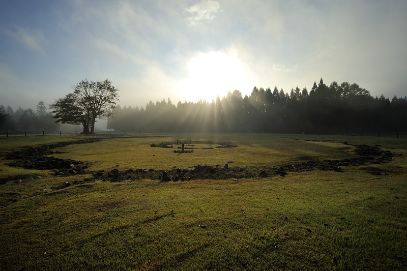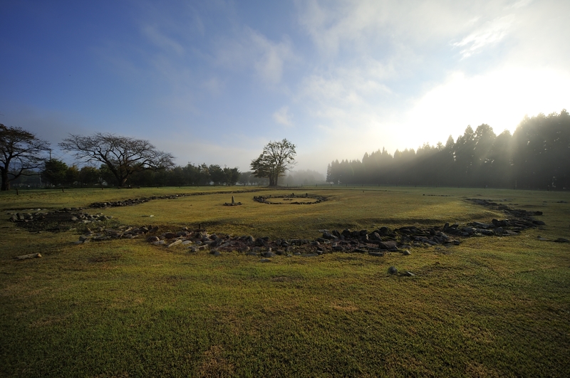 | (翌日の朝です) 鹿角市にある「大湯環状列石」です。 縄文時代後期の遺跡で、写真の環状列石は実物です。 |