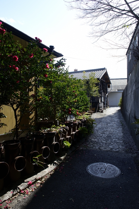| 名鉄常滑駅から南東方向にある小高い丘の上一帯が、昔の焼物の町を物語る町並み(散歩道)として整備されています。 レンガ造りの窯の煙突や、黒塀の建物、陶器を材料にした坂道など、レトロな雰囲気も楽しみながら回ることができます。 (使用機材:Nikon D800/Nikon 24-70mm F2.8) (編集&up:2015年10月) |