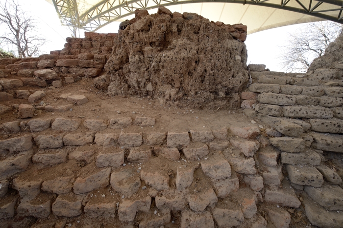 遺跡のほぼ中央部にある4,500年前の城跡 (ここだけテントで保護されています) |