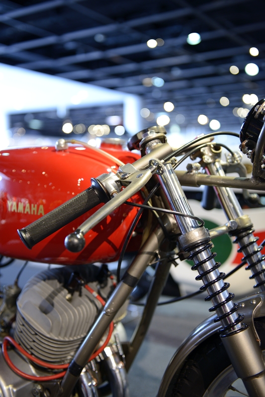 | 静岡県磐田市にあるヤマハ(ヤマハ発動機株式会社)の本社に隣接して、ヤマハコミュニケーションプラザがあります。 1階と2階には、過去から現在に至るまでのヤマハの製品が展示されており、特にオートバイに関しては第1号機からレーサーまで 70台?ぐらいありました。 昔見たバイクもあり、懐かしいひと時でした。 ※小さい画像は、過去に「今月の写真」に紹介したものから転用しています。 (使用機材:Nikon D800/Nikon 24-70mm F2.8) (編集&up:2015年10月) |